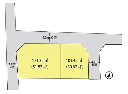 | 土地面積/坪(坪単価) | 101.42m2(登記簿)/30.73坪(28.60万円) | 代表的な接道 | 角地 公道 北 4.5m、東 4m ※詳細は備考欄をご確認ください |