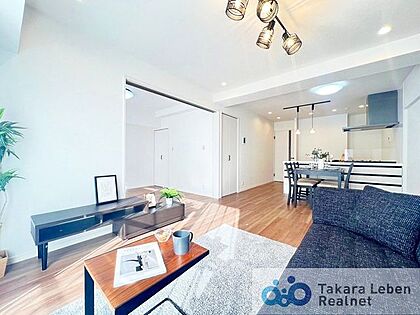 約15.8帖のリビングは採光が注ぐ心地の良い空間。隣接する洋室の戸を開け放してリビング空間の延長としてもお使いいただけます。