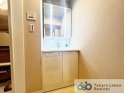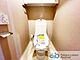 ウォシュレット機能付きのトイレは壁掛けリモコンの上位グレードを採用。便座がスッキリした印象となり、限られた空間を広く見せる効果があります。