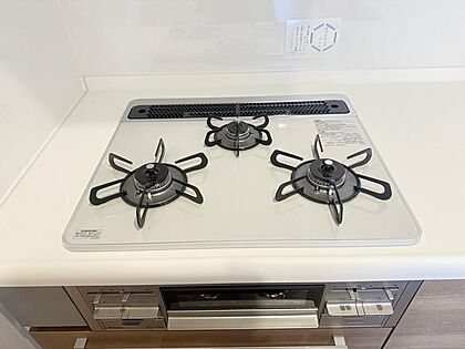 1度にたくさんのメニューが作れる3口コンロ付のシステムキッチン。(2025年2月撮影)