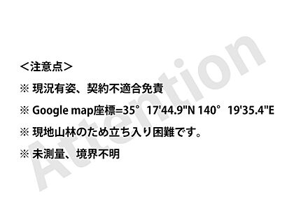 | 備考 | ※現況有姿、契約不適合免責。※現地山林のため立ち入り困難です。※未測量、境界不明 | ||