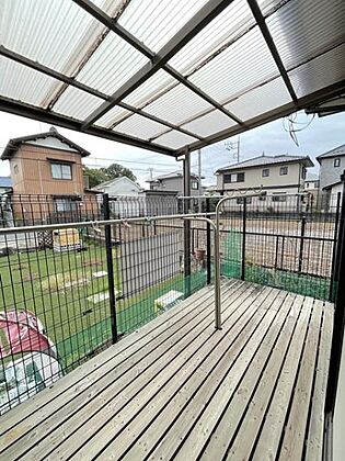 屋根付のデッキで、急な雨でも洗濯物が安心です♪