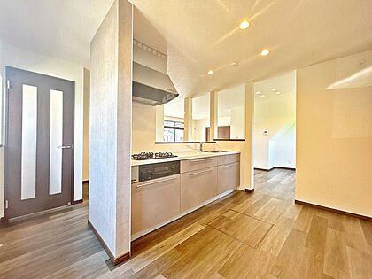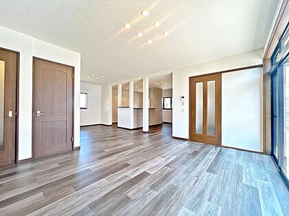 【リフォーム済】1階廊下写真。床はフロアタイルで仕上げ、壁・天井のクロスを貼替えました。1階の照明器具はすべて新品交換しました。LEDを採用しておりメンテナンスも楽々です。
