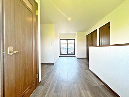 【リフォーム済】2階廊下写真。床はフロアタイルで仕上げ、壁・天井のクロスを貼替えました。