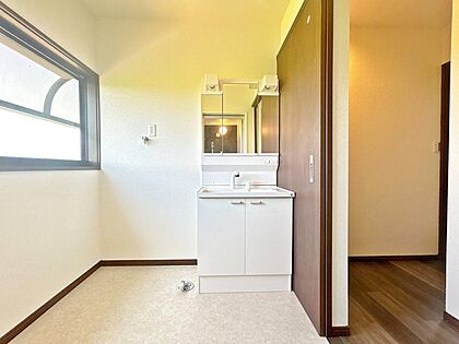 【リフォーム済】ハウステック製の三面鏡洗面化粧台に新品交換しました。鏡の裏の収納は、3cm刻みでトレーの高さが変えられるのでたっぷり収納ができます。LED照明付きで明るく使いやすい洗面台です。