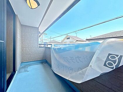 バルコニー写真。採光面が南向きなので日中も明るく、洗濯物も良く乾きそうです。
