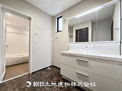 【洗面化粧台】慌ただしい1日が始まり、充実した1日の終わりを締めくくる洗面所。快適に過ごせることはもちろん、収納や機能性を兼ね備えた洗面化粧台です。