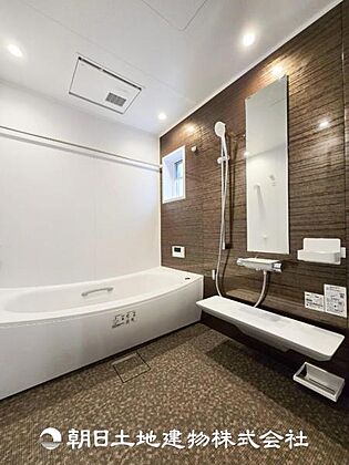 【浴室】上品な色合いが魅力のバスルームは、ほっと落ち着く空間を作り出しています。広々とした浴槽で体を癒やしながら、疲れを取り除けるような仕様です。お子様と一緒に楽しく入るのもいいですね。
