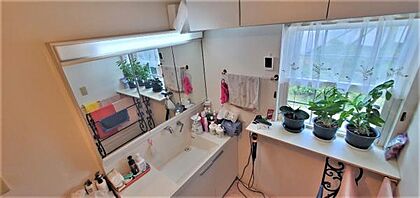 2階の洗面所です。鏡も大きく使いやすい広さです。