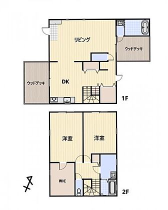 間取り図です。大型収納やウッドデッキも魅力。
