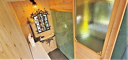 ウッドデッキ横に増設された浴室の脱衣所です。