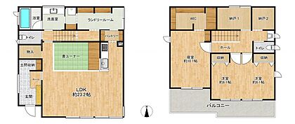 軽量鉄骨造2階建て、建物面積154.13m2、4LDKの贅沢な間取りです!