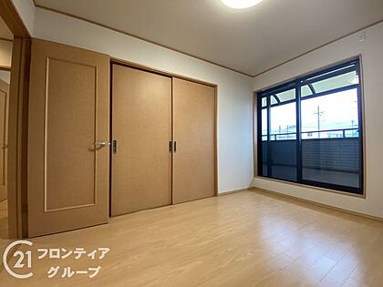 明るい日差しが差し込む洋室は、リラックスできる空間です。広々としたスペースで、家具の配置も自由自在です。