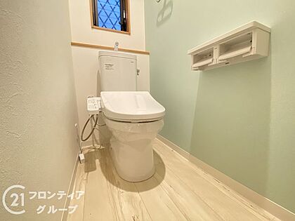 トイレは、清潔感と快適さを兼ね備えた空間です。落ち着いた色合いの内装が、リラックスできる雰囲気を演出しています