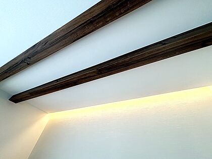 【モダンな間接照明】TVの上部には、間接照明が設置されています。