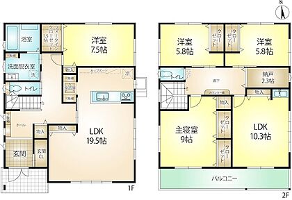 【間取り図】延べ154.01m2/5LDKで広々とした住宅。