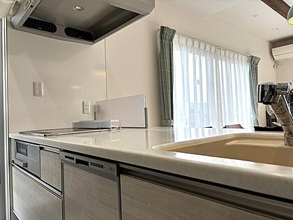 【開放的なオープンキッチン】お料理をしながらリビングを見渡せます。IHコンロ採用。