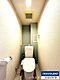 カラークロスでおしゃれで清潔な空間に。ストックや備品を置ける棚付きのトイレになります。