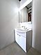 使用頻度の高い物にすぐ手が届く、棚収納付きの洗面化粧台です