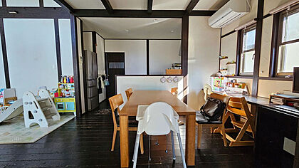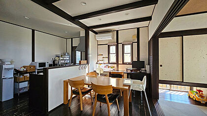 柱と漆喰壁がと相まって、古民家風のモダンな空間を演出しています。