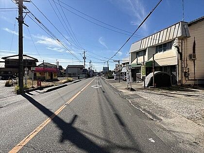 片側一車線の道路です。南側前面道路は、陽当たり・通風が良いので南側に庭や窓を作りやすくなり、家の中に長時間光を取り込むことが出来ますね。(2024年11月25日撮影)
