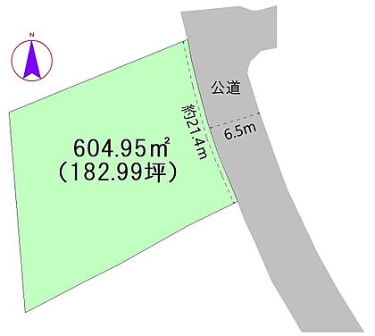 | 土地面積/坪(坪単価) | 604.95m2(登記簿)/183.32坪(1.00万円) | 代表的な接道 | 公道 東 6.5m ※詳細は備考欄をご確認ください |
