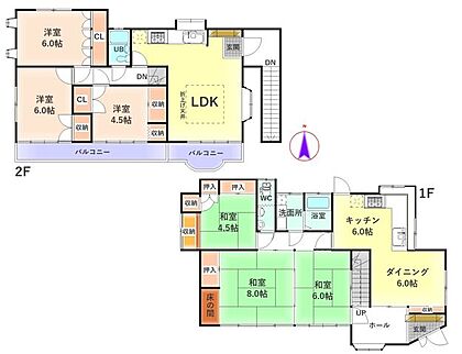 1階和室の様子約8帖のスペースで収納、床の間付きです!隣のお部屋とつなげて約14帖!ご友人、ご親族の集まりでも大活躍いたします!お布団敷いて、川の字で雑魚寝、子供心くすぐります!