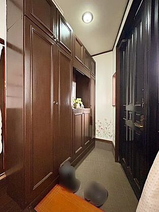 1階玄関の様子シューズボックス付き、棚もございますので飾り物等にもお使いいただけます!