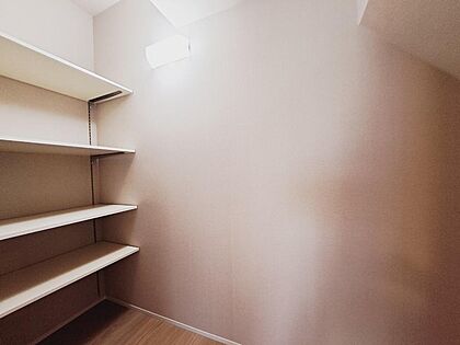 1F洋室(1)。大きめのクローゼットに可動棚もあり収納が充実しています。