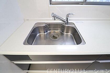 広いシンクは大量の洗い物にも対応します。いつもより、はりきったお料理にも挑戦できます。少し手元が隠れるのが嬉しいキッチン。