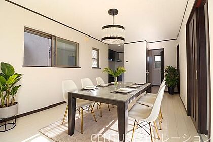 ダイニングスペースを確保しても十分に余裕のあるリビングです。※本画像はCGで作成しており、実際に現地に家具は置かれておりません。また価格に家具は含まれておりません。