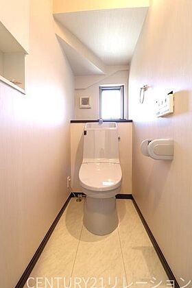 収納もあって使いやすいトイレです。ウォシュレット付きです。
