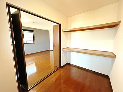 【リフォーム済】北東洋室内のWICの写真です。クロスの張替え、照明の交換を行っています。たくさんの荷物を収納することができますね