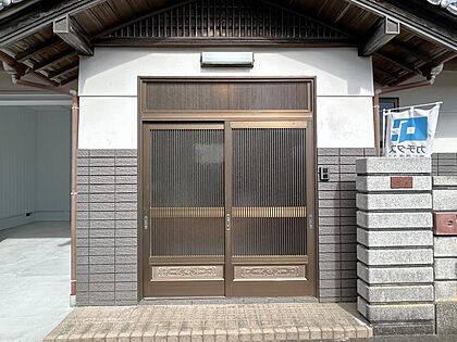 【リフォーム済】玄関扉は和風らしく引き戸がついています。格子戸のためあたたかな陽が玄関を照らしてくれますよ。