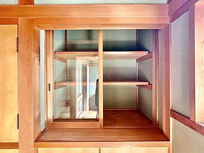 【リフォーム済】1階玄関横の収納です。和風住宅にぴったりな見せ棚がついています。収納だけでなくインテリアスペースとしてもお使いいただけそうです。