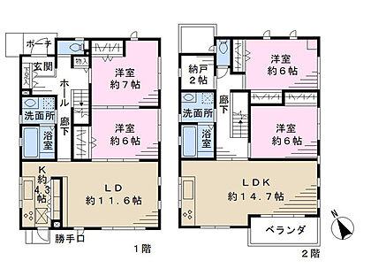 | 間取り | 4LDK | 構造及び階数 | 軽量鉄骨 2階建て |