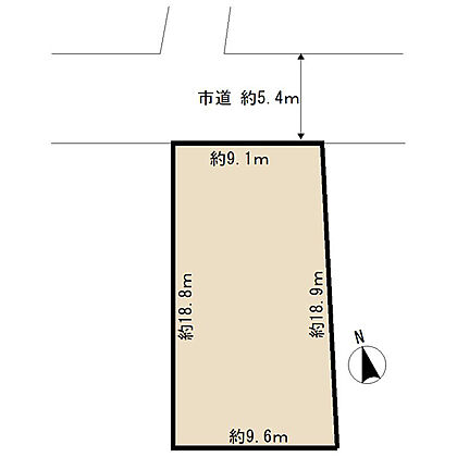 【接道】 一方 ( 公道 北東 5.4m ) 宅地造成工事規制区域・建築基準法22条指定区域 |