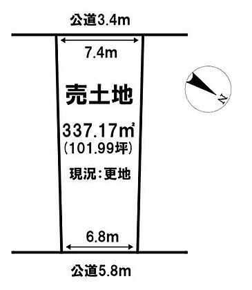 | 備考 | 【接道】 二方 ( 公道 北東 5.8m ) ( 公道 南西 3.4m ) | ||