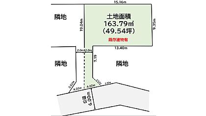 | 土地面積/坪(坪単価) | 163.79m2(登記簿)/49.63坪(37.90万円) | 代表的な接道 | 公道 南 6m ※詳細は備考欄をご確認ください |