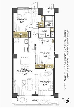 全室にクローゼット完備、収納が豊富で使いやすい間取りになっています。