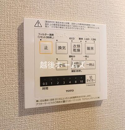 浴室には乾燥の他に換気、暖房、冷風など様々空調機能搭載の浴室乾燥機が完備。