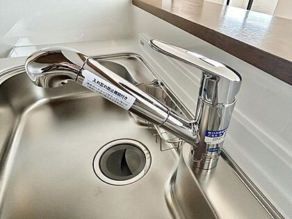 •  【リフォーム済写真】新品に交換したシステムキッチンは浄水器付きの水栓です。水道水に抵抗がある方も安心です。