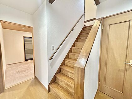 •  【リフォーム済写真】階段は窓があり明るい雰囲気です。手すりも付いているので安心ですね。床はクリーニングを行いきれいに仕上げました。