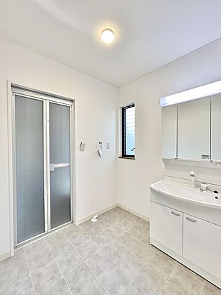 •  【リフォーム済写真】三面鏡付き洗面化粧台に新品交換しました。壁・天井クロスと床はクッションフロアの張り替えをしたので清潔な空間で、朝の支度も気持ちよく出来そうです。