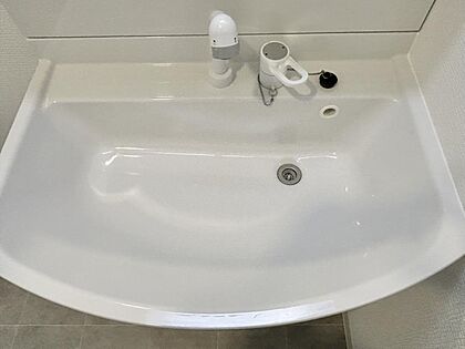 •  【リフォーム済写真】新品に交換した洗面化粧台は間口75cmの大型の洗面ボウルは洗顔・洗髪はもちろん、つけ置き洗いにも使えます。