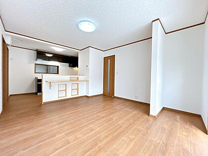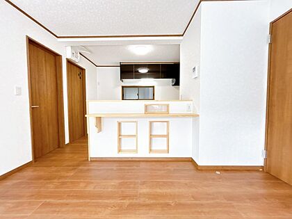 【リフォーム済】リビングの写真でです。キッチンの後ろに腰壁を設けることにより、カウンター風にリフォームをしました。