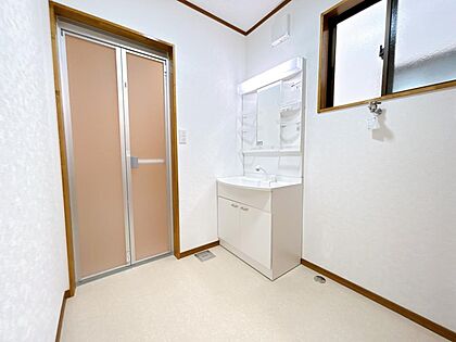 【リフォーム済】洗面化粧台はパナソニックAWE社製の新品に交換しました。大型の洗面ボウルは洗顔・洗髪ももちろん、つけ置き洗いにも使えます。