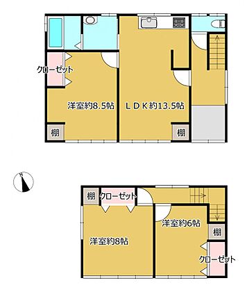 【リフォーム済】間取りは3LDKに変更しました。各居室に収納がございますので、お部屋もすっきりしますね。