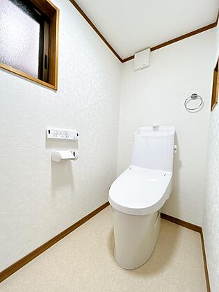 【リフォーム済】トイレの写真です。新しい温水洗浄機能付きトイレに交換いたしました。直接肌に触れるところなので設備が新しいと気持ちいいですね。