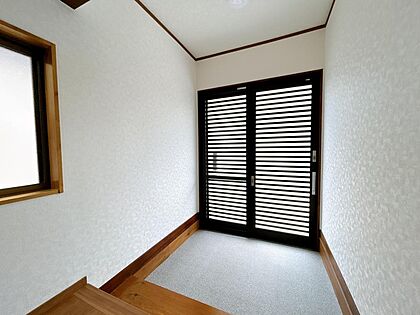 【リフォーム済】玄関戸は新品に交換しました。おうちの顔になる玄関が新しいと、お友達をたくさん呼びたくなりますね。